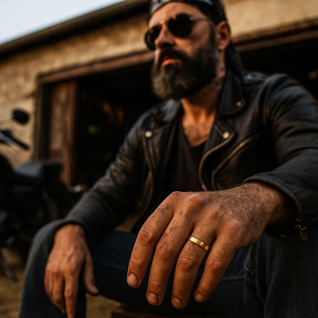Not every piece needs to shout — some just speak for themselves. The Gold Classic Band Ring is for the man who rides hard, lives free, and keeps his style as solid as his word.